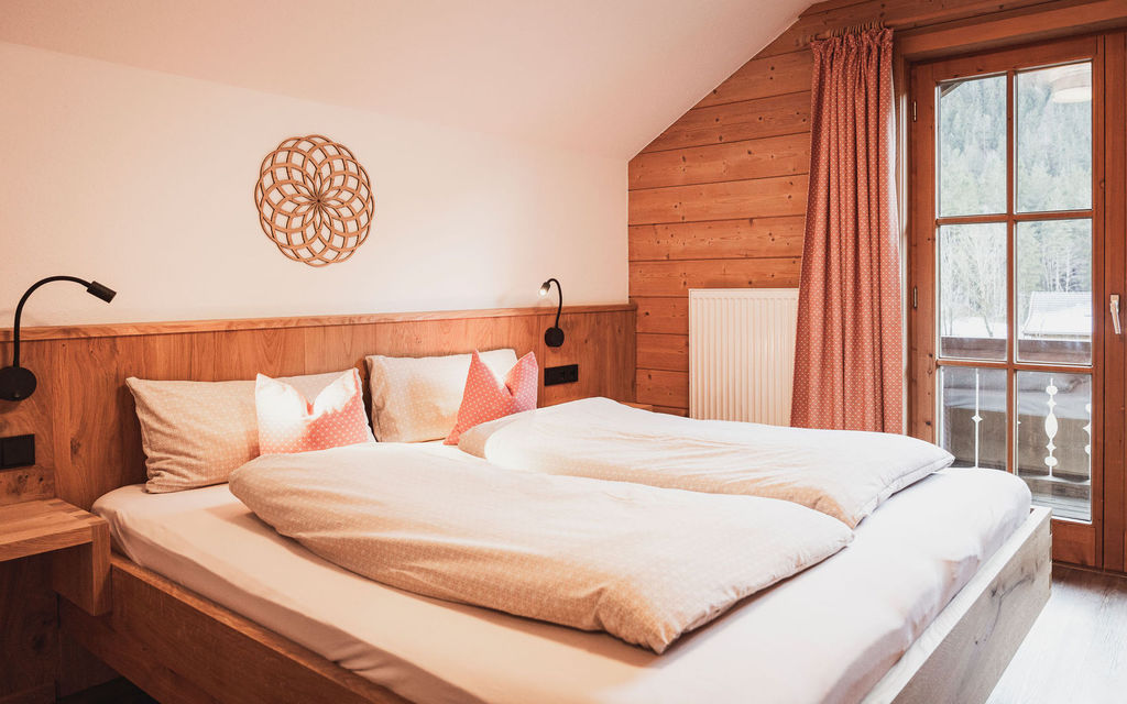 Die Ferienwohnung 3 ist nach Süden ausgerichtet und hat einen großen überdachten Balkon mit Blick auf unsere Pfannenhölzer. Hier können Sie die Nachmittags und Abendsonne genießen.