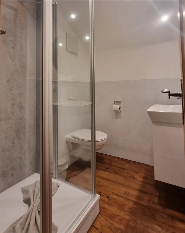 + Badezimmer mit großer ebenerdiger Dusche/WC und Handtuchheizkörper